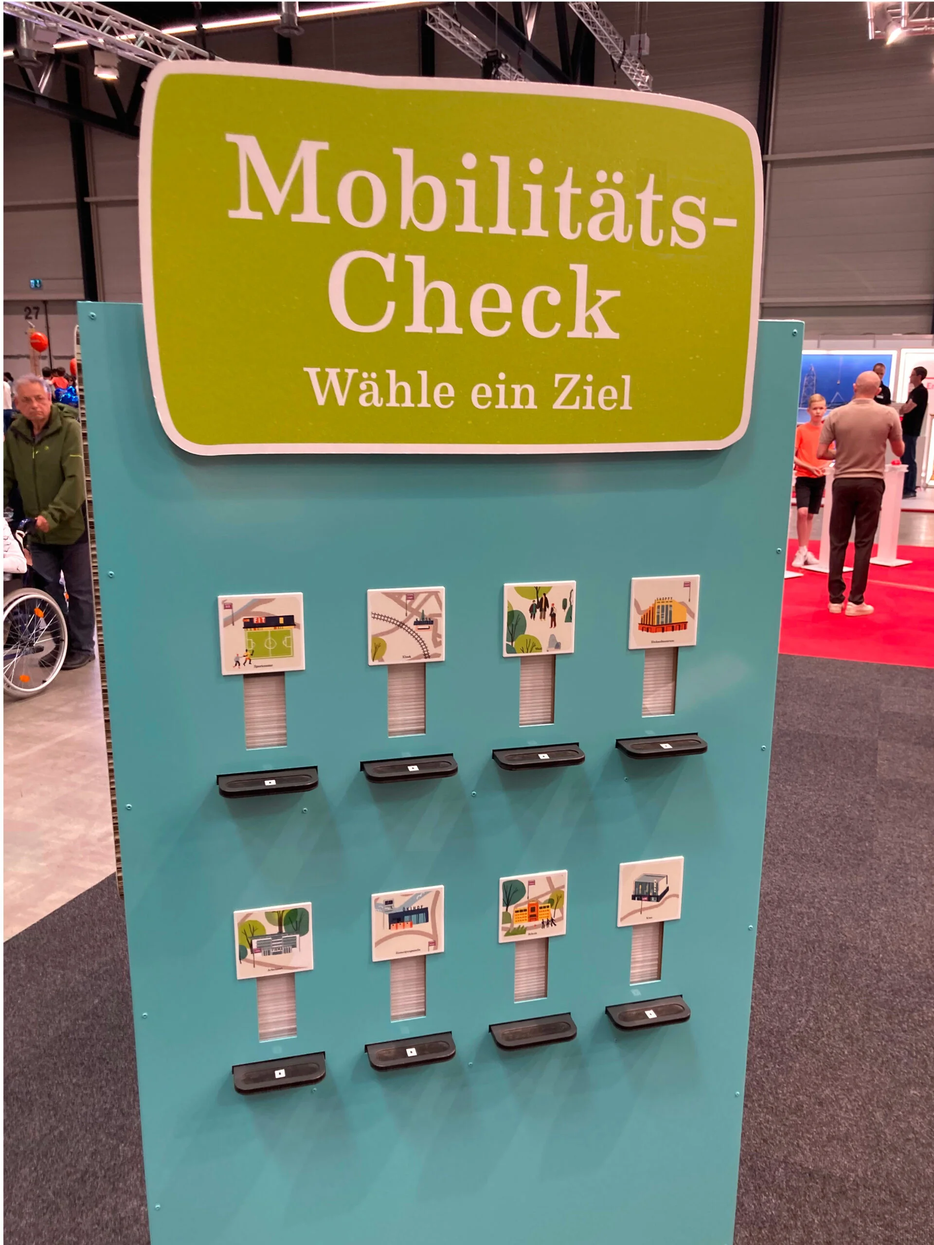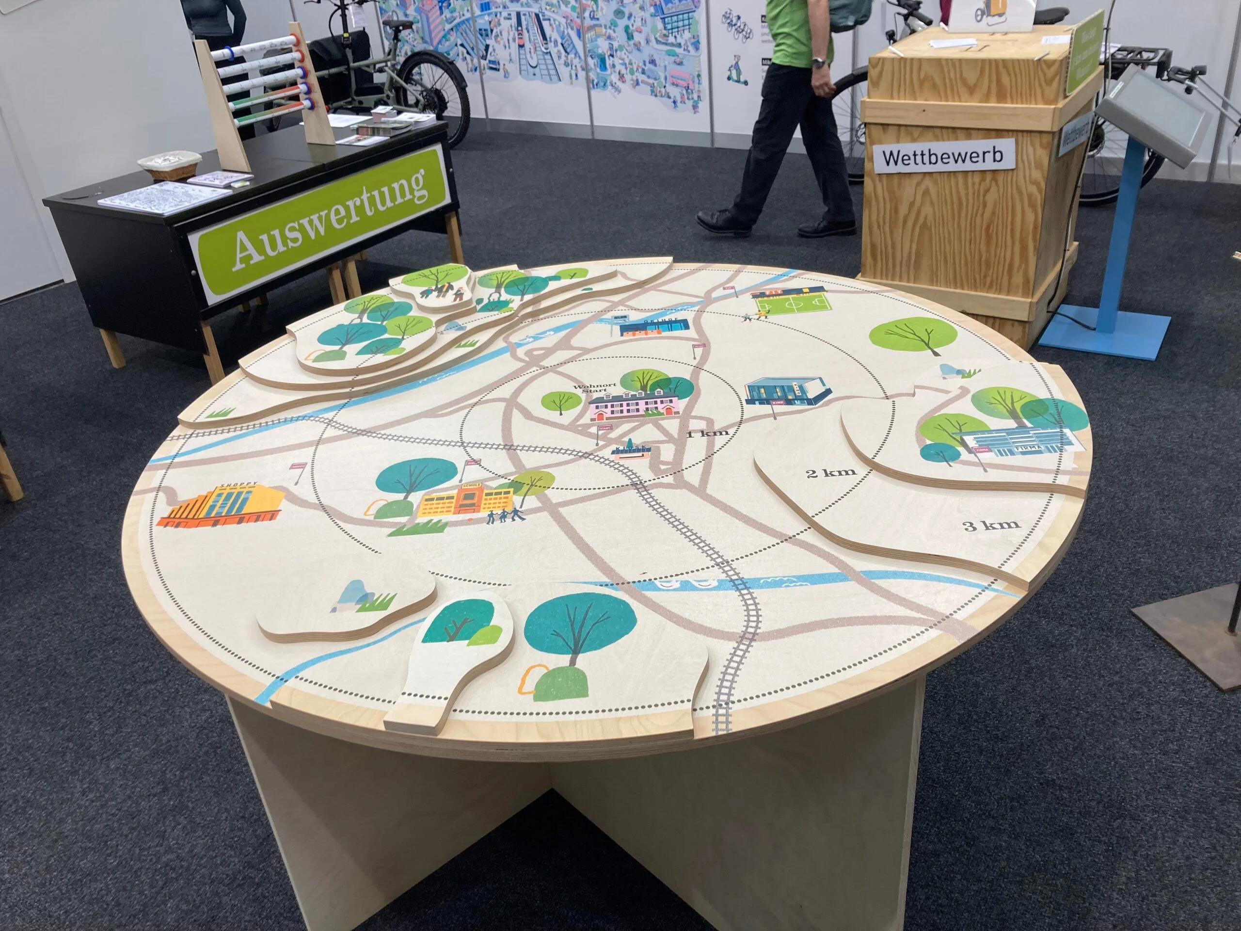 Am Anfang des Mobilitätsspieles wählen die Besuchenden an einem Automaten ein alltägliches Ziel. Einkaufen, Entsorgen, sportliche Freizeitaktivitäten oder der Arbeitsweg stehen zur Auswahl. Mitgewählt wird ein Verkehrsmittel, das es zu beurteilen gilt: Wie schnell bin ich, wie viel Energie verbrauche ich, ist das zugewiesen Verkehrsmittel für die Strecke sinnvoll? Grundlage bildet ein fiktiver Wohnort, wo die entsprechenden Routen gesucht und beurteilt werden können. Fachpersonen helfen und erklären dabei.