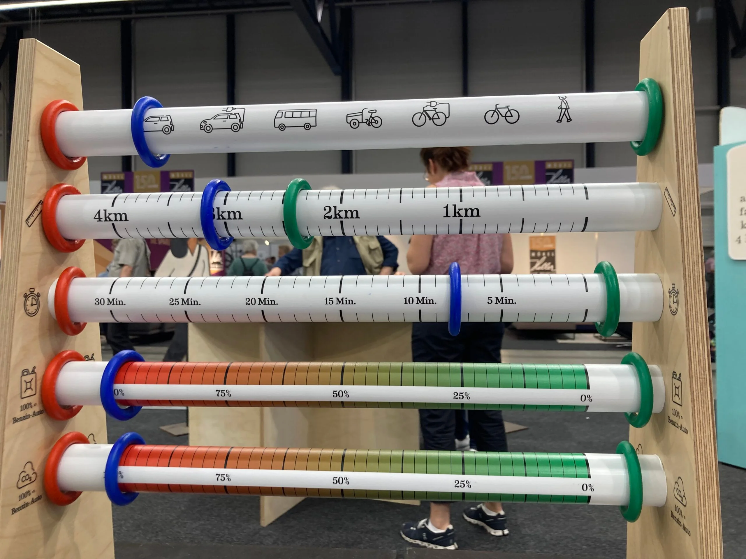 Das Aktionsmodul «Mobilität» vermittelt auf spielerische Weise, welches Verkehrsmittel sich für unterschiedliche Distanzen am besten eignet. Die Kernaussage: Für kurze Strecken ist das Auto meist überflüssig – zu Fuss, mit dem Velo oder dem E-Bike kommt man sinnvoller ans Ziel.