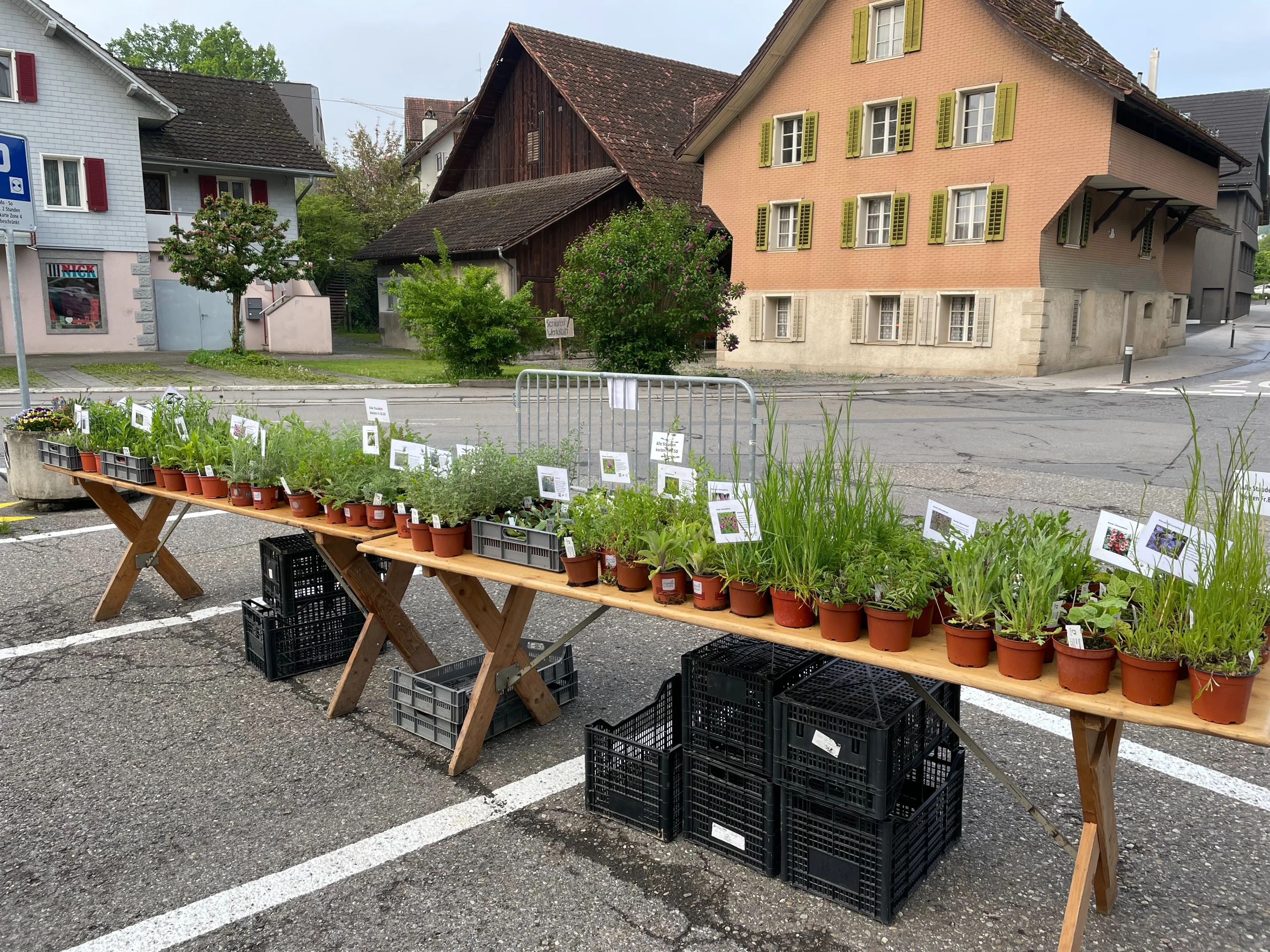 Hier gibt es eine gute Gelegenheit, sich mit aromatischen Tomaten- und gesunden, robusten Gemüsesetzlingen quer durchs Beet, sowie mit Kräutern in Bioqualität von der Gärtnerei Eichberg Seengen einzudecken, inklusive Gartenberatung und Kaffee.